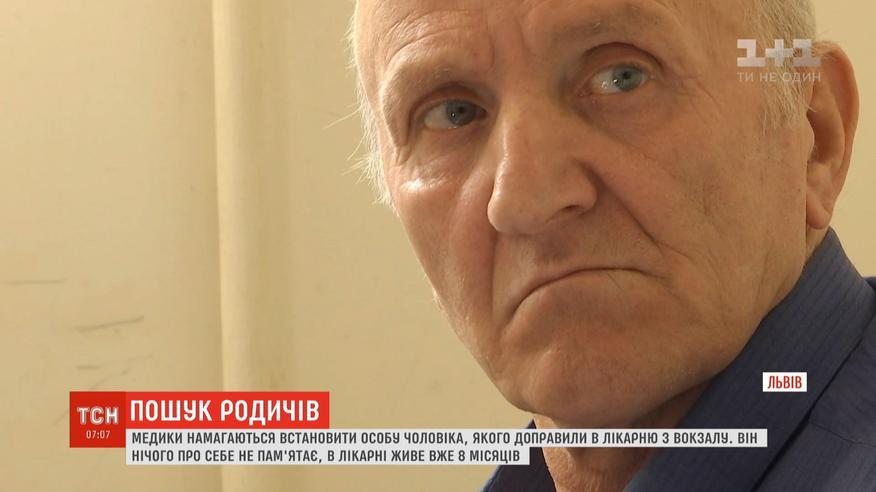 Літнього пана в лікарню швидкої допомоги доправили з вулиці - він нічого про себе не пам'ятає. На вигляд чоловікові років 60, але точно свого віку назвати не може. Звідки він та яке його ім'я - теж не знає. Вісім місяців тому про ледь притомного чоловіка без кінцівки, якого знайшли неподалік приміського вокзалу, у швидку повідомили перехожі. Відтоді він живе в лікарні.