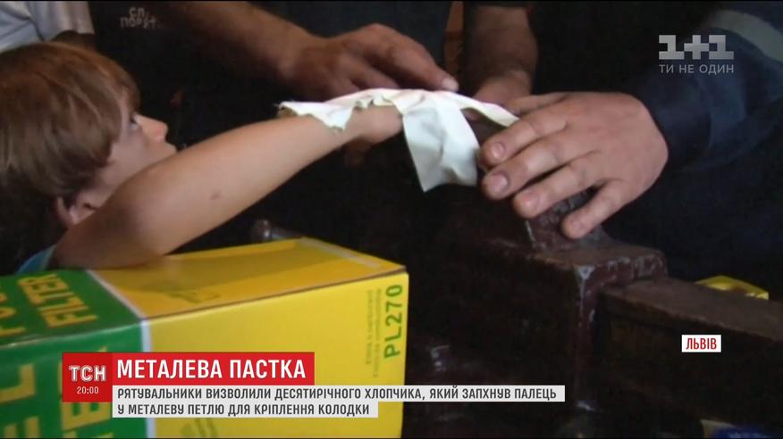 Данилко прийшов з мамою в гості і, граючись, запхнув палець у петлю для кріплення колодки . Витягти самотужки не зміг, не вдалося зарадити і родичам. Бригада рятувальників зрізала петлю болгаркою і передала дитину медикам. Але палець так набряк, що лікарі виявилися безпорадними. Тож довелося знову втрутитися надзвичайникам.