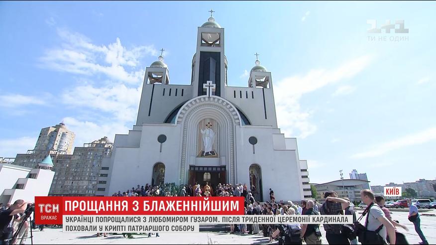 Під час прощальної служби храм був заповнений ущерть. Хто не вмістився, слухав проповідь з екрану на подвір'ї. Її провів предстоятель греко-католиків України Святослав Шевчук. Прощання завершив словами Гузара: "Я залишаю вам єдність, як великий заповіт". Священнослужителі пронесли труну з тілом до усипальниці та розмістили під вівтарем.