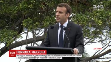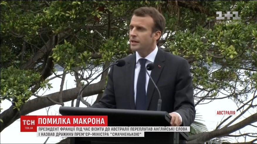 Макрон потрапив у незручне становище під час візиту до Австралії. Виступаючи у Сиднеї, він, дякуючи голові уряду за гостинність, помилково назвав його дружину "смачненькою", сплутавши із словом "чарівна", яке англійською звучить дуже схоже. Прем'єр-міністр такий неочікуваний комплімент на адресу дружини сприйняв з гумором, не загострюючи увагу на пікантній двозначності.