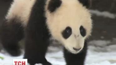 15 тонн снігу перемололи на сніжинки і вкрили ними пандячий вольєр. Семимісячне маля на прізвисько містер Ву сніг побачило вперше.