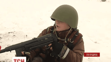 В 30 кілометрах від луганської передової маленький хлопчик з іграшковим автоматом намагається допомогти українським солдатам охороняти блок-пост поблизу його власного дому, в той час як його однолітки поруч катаються на санчатах.
