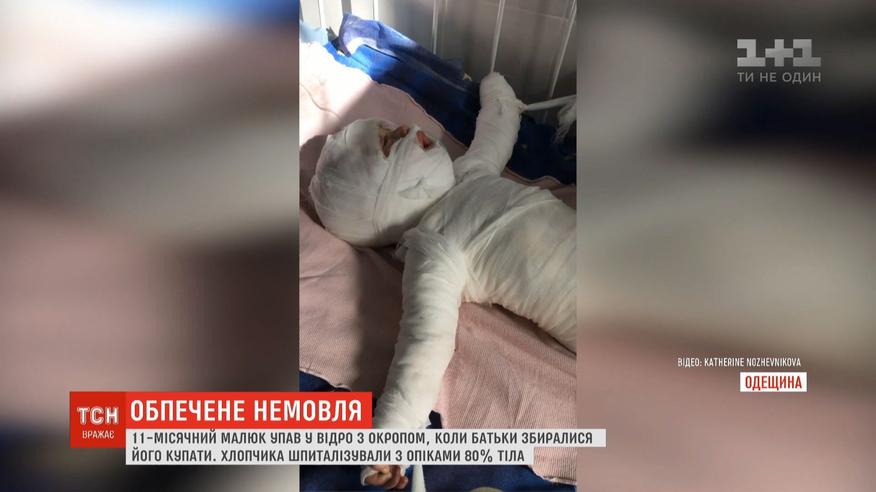 З опіками 80% тіла малюка терміново шпиталізували. Уже добу лікарі борються за його життя. Поряд із дитиною цілодобово сидить його мама, яка картає себе за те, що не догледіла за малюком. Поліція кваліфікує інцидент як нещасний випадок.