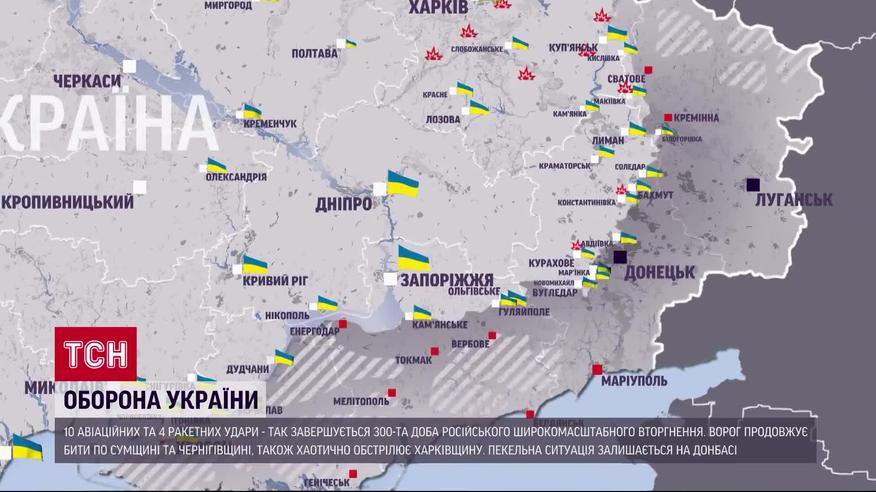 Противник й надалі зосереджує зусилля на веденні наступальних дій на Бахмутському і Авдіївському напрямках. На Волинському і Поліському напрямках ознак формування наступальних угруповань окупантів не виявлено. На Запорізькому та Херсонському напрямках противник продовжує артилерійські обстріли позицій наших військ та цивільної інфраструктури. Загроза завдання ворогом авіаційних та ракетних ударів по об’єктах критичної інфраструктури залишається на всій території України. Детально про ситуацію на фронті - у сюжеті.
