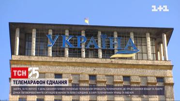 Телемарафон національної єдності покажуть головні українські телеканали завтра, 16 лютого. Вранці - з 8:00 до 10:00, та ввечері - із 19:00 до 22:00. Про це повідомив міністр культури та інформаційної політики Олександр Ткаченко. Це - один із заходів до Дня єднання, його напередодні запровадив президент Зеленський. У телеефірах представники влади та лідери думок обговорюватимуть поточну ситуацію на кордонах України та всередині держави.