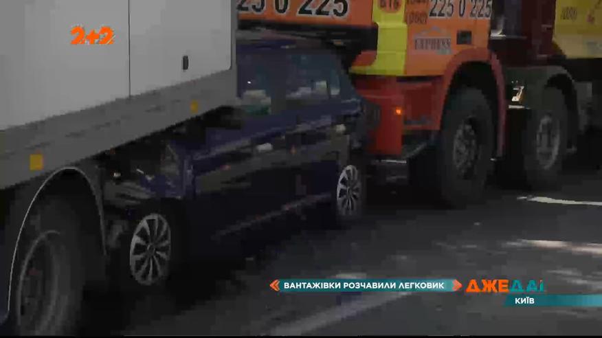 Масова аварія у Києві: вантажівки розчавили легковик