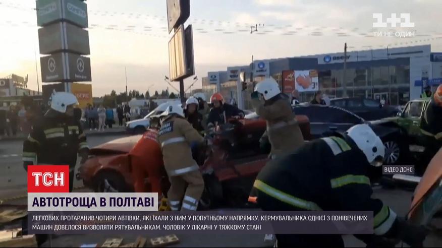 Масштабне зіткнення: у Полтаві легковик на великій швидкості протаранив 4 автівки