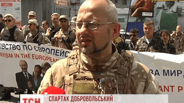 Кілька десятків майданівців пікетували Представництво Європейського Союзу. Активісти невдоволені тим, що Ангела Меркель висуває посередником саме Медведчука, який є кумом Путіна.