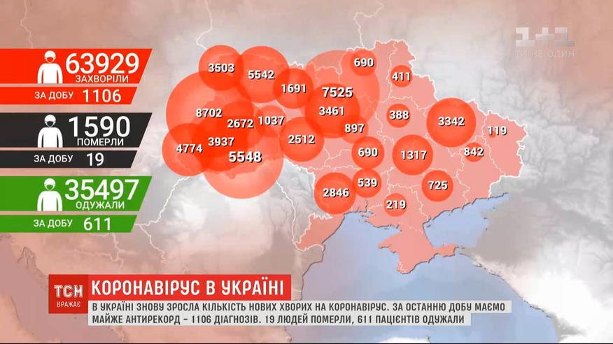 За тисячу переступила кількість нових випадків коронавірусу в Україні. Плюс 1106 хворих. І це майже антирекорд. Востаннє таку кількість фіксували місяць тому. Після того захворюваність почала спадати. Найбільше недужих за останню добу в Рівненській та Львівській областях, а також у Києві. Зросла й кількість померлих - 19-ро людей не змогли подолати недугу. Водночас маємо обнадійливу статистику: 611 пацієнтів одужали. На щоденному брифінгу міністр охорони здоров'я Максим Степанов зазначив, що зараз немає жодної заборони щодо відвідування хворих у лікарнях. Виняток становлять лише пацієнти, що мають коронавірусну хворобу. Більше про коронавірус в Україні