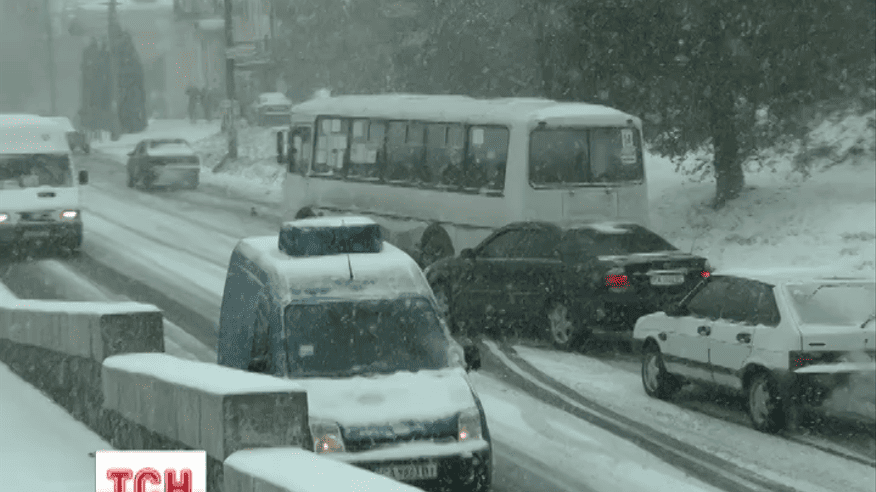Через ожеледицю та мокрий сніг на дорогах утворилися затори. Автомобілі буксували на найменших підйомах. Фактично непроїзною стала траса "Черкаси-Умань".