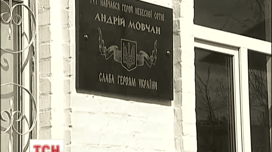 Пам’ятну дошку Андрію Мовчану встановили на стіні його рідної школи. Він був активістом Євромайдану від першого дня, згодом вступив до самооборони. Під час розстрілів 20 лютого його прошило кілька снайперських куль.