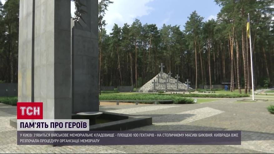 У Києві з'явиться військове меморіальне кладовище площею у 100 гектарів! Йдеться про масив Биківня. Київрада вже розпочала процедуру організації меморіалу. І хоч за його створення відповідає держава, а місце визначає уряд, столиця всіма можливими способами сприятиме створенню меморіалу загиблих героїв, заявив мер столиці Віталій Кличко. За його словами, у Биківні є 8 вільних гектарів у власності міста. Поруч ще 90 гектарів, які у власності держави. Тому загальна площа Національного військового меморіального кладовища має сягнути майже 100 гектарів.