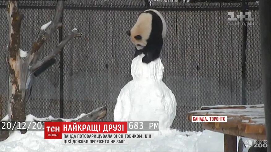 Ведмідь на прізвисько Да Мао спробував потоваришувати зі сніговиком, якого встановили для нього доглядачі. Тварина спочатку намагалася обійняти нового сусіда, а потім, не побачивши жодної реакції у відповідь, видерлася йому на спину. Закінчилося все тим, що панда відкрутила сніговику голову.