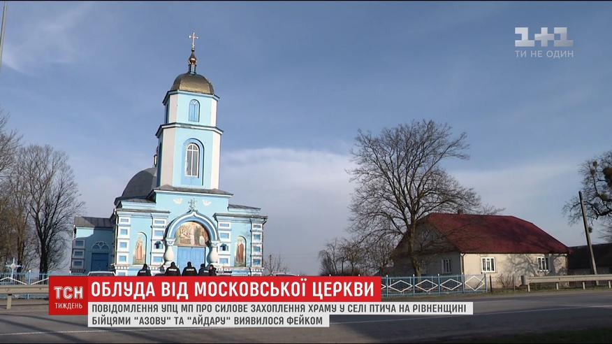 У селі Птича на Рівненщині уже 4 роки громади Київського та Московського патріархатів змагаються за храм у селі. А нещодавно УПЦ МП заявила, що вірян МП виводили з храму під прицілом бійців "Азову" та "Айдару" з автоматами і в балаклавах. На події одразу відреагували ОБСЄ та МВС, але новина вкотре виявилась фейковою.