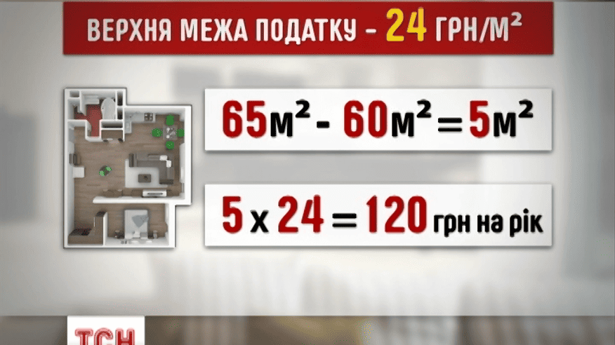 Зміни у законодавстві стосуватимуться лише пенсіонерів, які отримують більше ніж три тисячі шістсот п’ятдесят чотири гривні – їм доведеться сплатити різницю. Квартири до 60 м² та будинки до 120 м² не оподатковуватимуться. За решту треба буде платити 24 гривні за квадратний метр.