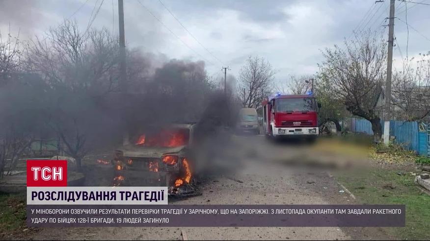 Не вжили належних заходів безпеки та проігнорували інформацію про ворожий безпілотник. У Міноборони озвучили результати перевірки трагедії у Зарічному, що на Запоріжжі. 3 листопада окупанти там завдали ракетного удару по бійцях 128-ї бригади. Сталося це безпосередньо перед нагородженням військовослужбовців. 19 людей загинуло. Перевірка, каже міністр оборони, показала, що правила маскування того дня були повністю проігноровані під час шикування бійців та розміщення службових авто. Деталі – в ТСН.