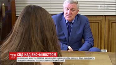 Михайлу Єжелю закидають зловживання службовим становищем зокрема, оборудки із фірмами, що постачали харчі для армії. Завдані державі збитки оцінюють у понад 40 мільйонів гривень. Якщо Єжель не з'явиться на засідання, судді зможуть почати розгляд справи і без нього у заочному порядку. Колишній міністр оборони, за даними прокуратури, мешкає у Білорусі.