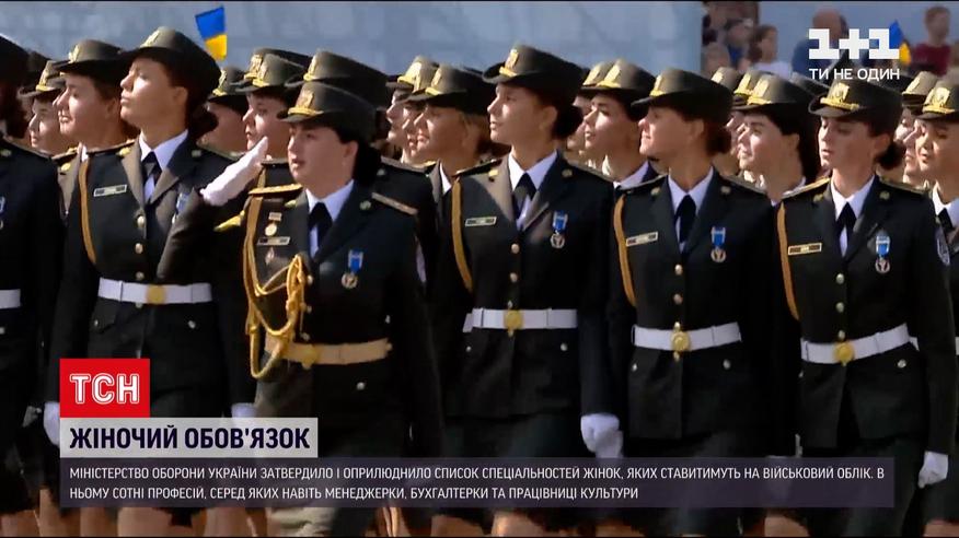 Міноборони України затвердило і оприлюднило список спеціальностей жінок, яких ставитимуть на військовий облік. В ньому сотні професій, серед яких навіть менеджерки, бухгалтерки та працівниці культури. За тим, щоб жінки не забули зареєструватися у військкоматі, мусить стежити роботодавець. А під час оформлення працівниці на роботу підприємство має перевірити, чи має вона відмітку про взяття на військовий облік. На облік ставитимуть усіх здорових жінок, спеціальність яких є в списку, і яким ще не виповнилося 60.
