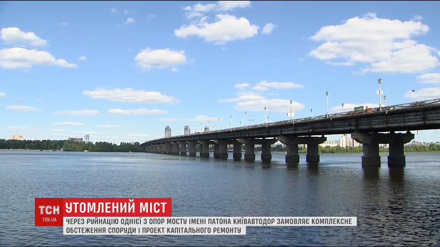 Міст імені Патона втомився не на жарт. Одна з опор найстарішої столичної переправи руйнується надшвидкими темпами. Відремонтувати пошкодження Київавтодор не квапиться. Торік провели поверхневе обстеження і заспокоїли – міст не впаде. Проте погоджуються, що проблемна опора руйнується і загрожує міцності конструкції. Тому цьогоріч проведуть уже комплексне обстеження і розроблять проект порятунку однієї з головних дорожніх артерій міста.