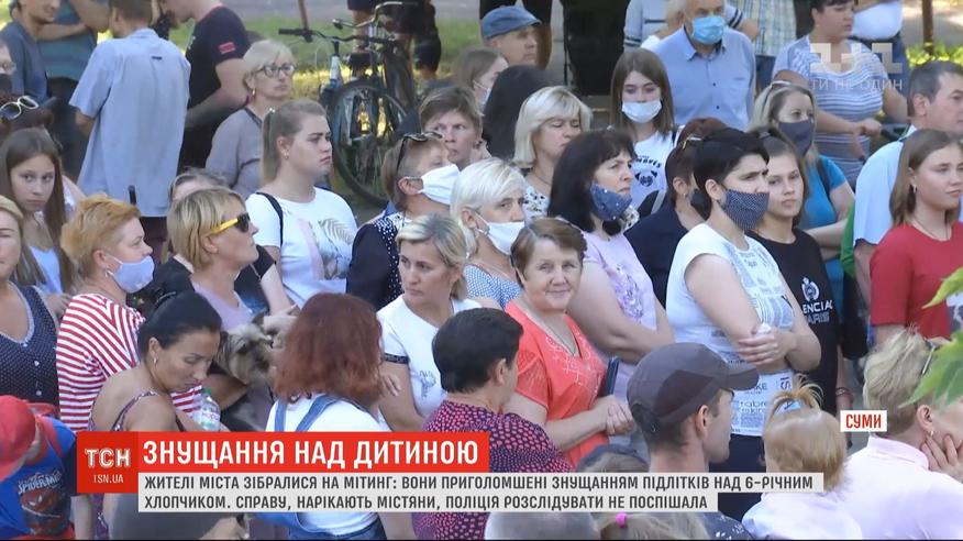 Справедливого розслідування у справі про знущання над шестирічним хлопчиком вимагають сумчани. Надвечір більше сотні людей зібралися на території школи - неподалік від того місця, де група підлітків збиткувалася з дитини. Кажуть, тортури тривали щонайменше півроку. Дитину били, принижували і навіть ґвалтували. А коли батьки звернулися до поліції - ніхто не збирався братися за розслідування. Лиш після розголосу погодилися відкрити справу за фактом хуліганства, а насилля над шестирічкою взагалі назвали вигадкою. Протестувальники розійшлися лиш після того, як очільник міста та поліції особисто пообіцяли тримати справу під контролем.