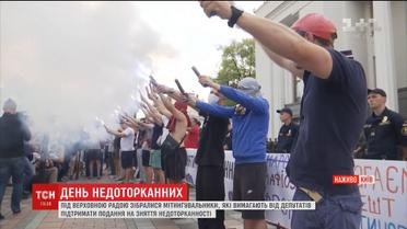 Мітингувальники палять фаєри у перервах між слуханням трансляції з ВР