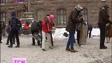 Мітингувальники почали очищати Майдан від криги