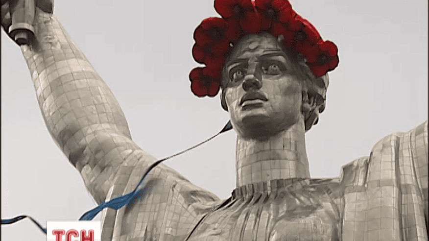 Монумент Батьківщині-Матері причепурили вінком з маків і стрічками