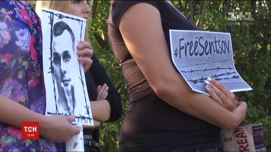 Містяни зібралися на площі Василя Стуса, який у 80-их роках став голосом українського громадянина в боротьбі з репресивною радянською машиною. Учасники акції тримали в руках портрети кінорежисера та читали уривки з творів Стуса та Сенцова.