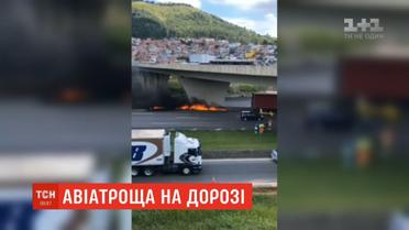 На автомагістралі у Бразилії легкомоторний літак упав на вантажівку й загорівся