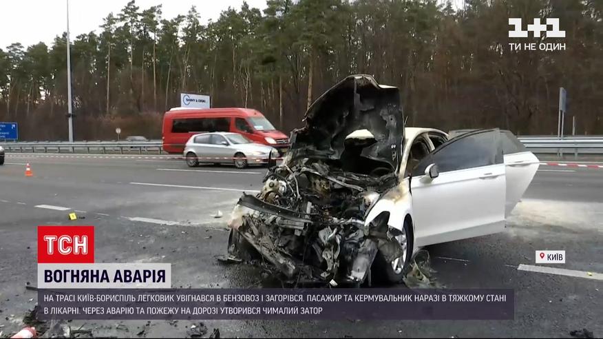 На Бориспільській трасі внаслідок зіткнення загорівся легковик | Новини України
