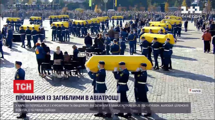 Відбулася церемонія прощання з загиблими в авіакатастрофі поблизу Чугуєва. Під час навчального польоту на облавку було 27 людей - 7 офіцерів та 20 курсантів. Дивом вижив лише один - В'ячеслав Золочевський. На центральну площу Харкова прийшли тисячі людей. За кадром залишилися військові, які тут на площі не змогли стримати сльози. ТСН збирала історії цих хлопців – детальніше дивіться далі.
