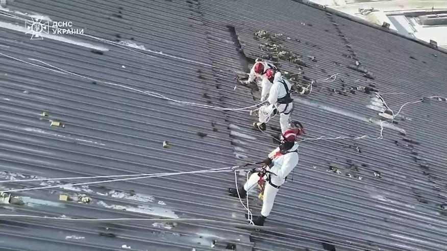 Триває ліквідація наслідків удару ворожого БпЛА по Чорнобильській АЕС. Станом на ранок 19 лютого рятувальники продовжують гасіння осередків тління та проводять роботи із часткового розкривання конструкцій укриття. Радіаційний фон на проммайданчику ЧАЕС не перевищує норми.