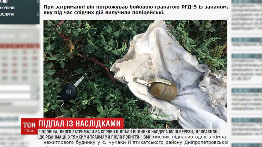 На Дніпропетровщині невідомий проник у будинок депутата Берези і підпалив одну з кімнат