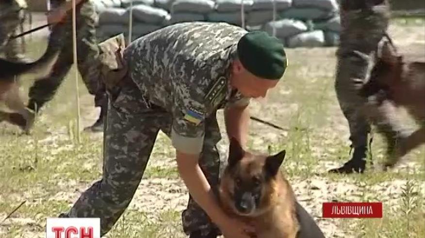 Два десятки службових собак з Львівщини готують для розмінування територій на Донбасі. Прикордонники-кінологи зі своїми службовими собаками мають невдовзі поїхати у зону антитерористичної операції і нині вони переучують своїх підопічних шукати не наркотики, а вибухівку.