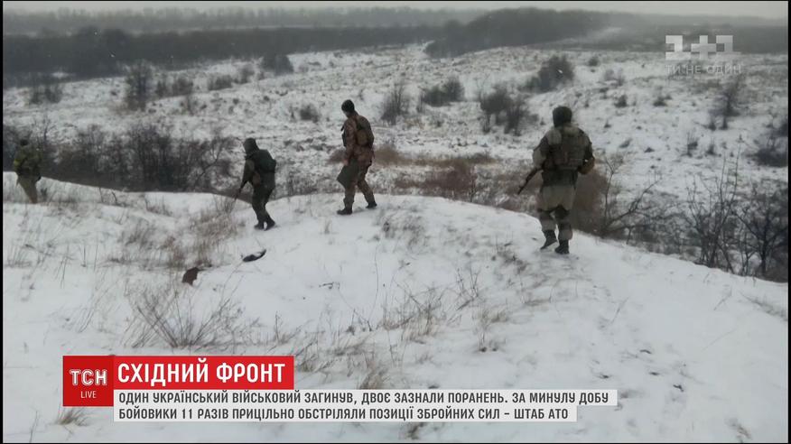 Один український військовий загинув, ще двоє зазнали поранень. Найгарячіша ситуація на Луганщині. Там під вогнем околиці Кримського. Позиції Збройних Сил противник за останню добу обстрілював кілька разів. Також з мінометів та гранатометів бойовики вели обстріл по Опитному біля окупованого Донецька та по селу Водяне, що на Приазов'ї.
