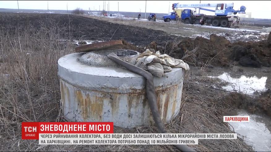 Через аварію на колекторі досі без води - кілька великих мікрорайонів міста Лозова. Там живуть 45 тисяч жителів. Ремонтують колектор цілодобово, але, коли комунальники зможуть відновити майже два з половиною кілометри геть зруйнованих труб - поки що не кажуть. На ремонт колектора потрібно більше 10 мільйонів гривень, їх у бюджеті міста немає.