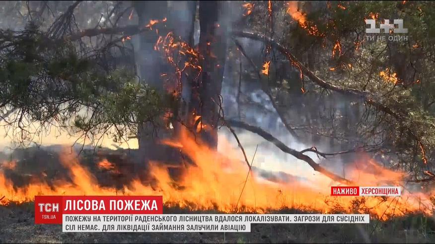 Пожеже сталась в Олешківському районі. Гасінню заважав сильний вітер, який роздмухував полум'я. Аби вгамувати вогонь, пожежники залучили авіацію. Нині надзвичайникам вдалося локалізувати пожежу. Однак, й досі тліє підстилка, а місцями відкрито горить.