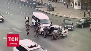 У вівторок, 13 жовтня, на Хрещатику в Києві відбулася спецоперація із затримання групи розбійників, які підшуковували жертв біля обмінників. Після валютної операції вони нападали на потерпілих і відбирали гроші. Під час затримання зловмисники хотіли втекти, протаранили чотири авто.