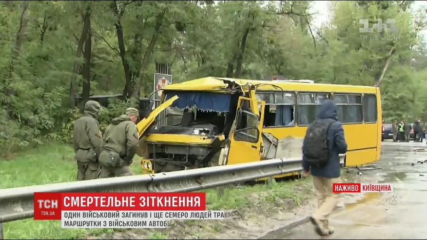 На Київщині маршрутка врізалась у військову колону