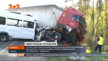 П'ятеро загиблих та п’ятнадцятеро людей у лікарні з тяжкими травмами. Всі ці жертви є наслідками аварії, що сталася на автошляху Київ-Харків. Потерпілих швидко відвезли до лікарні у Борисполі, де був найближчий шпиталь. Докладніше, про усі обставини автотрощі, дивіться у сюжеті. Повні випуски дивіться на 1+1 video