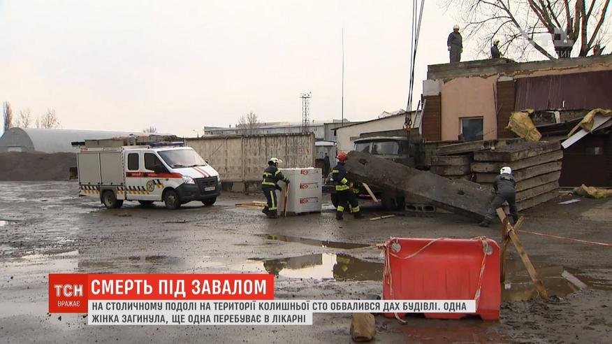 Кількатонні плити впали на них, поки ті працювали на будівництві. Одна жінка загинула від важких травм, ще одна - в лікарні. Поки експерти та слідчі з’ясовують причини обвалу, у Києві планують проінспектувати схожі склади та гаражі на дотримання норм безпеки.
