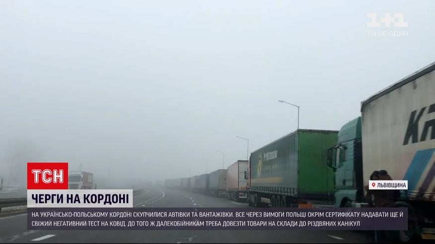 Черги на українсько-польському кордоні. Якщо напередодні на пунктах пропуску були затори з легковиків через те, що Польща почала вимагати крім сертифікату про вакцинацію ще й негативний тест на коронавірус, то сьогодні зросла черга вантажівок. Перед новим роком це традиційне явище - кажуть прикордонники. З чим це пов'язано і скільки часу далекобійникам доводиться чекати на перетин кордону – дивіться у прямому включенні.