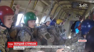 На Львівщині сотня ліцеїстів вперше стрибнули із парашутом
