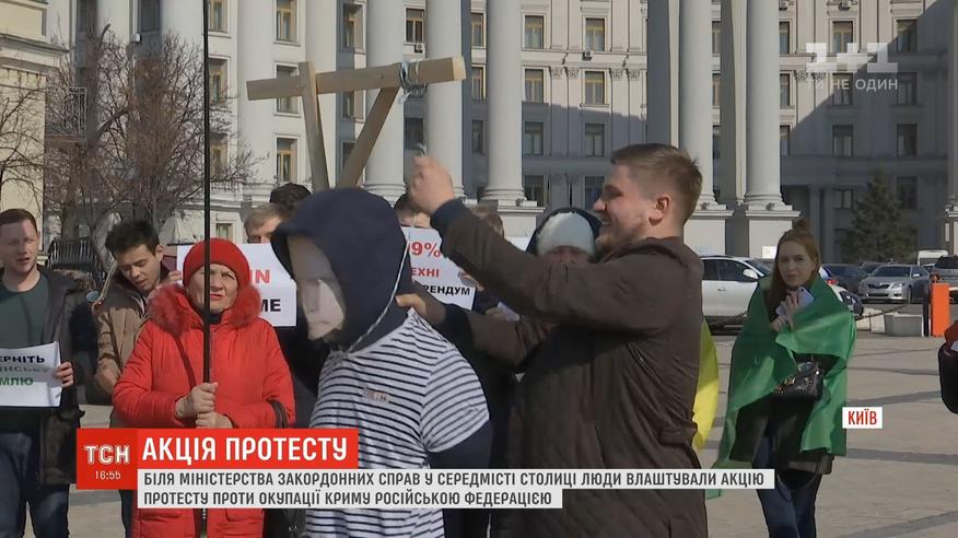 На Михайлівській площі в Києві провели акцію протесту проти окупації Криму Росією