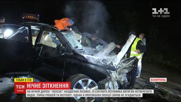 На нічній трасі п'яний водій іномарки врізався у лісовоз і перекрив дорогу
