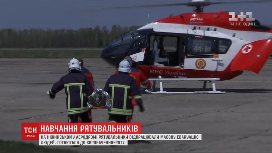 На Ніжинському аеродромі рятувальники відпрацювали масову евакуацію з допомогою авіації