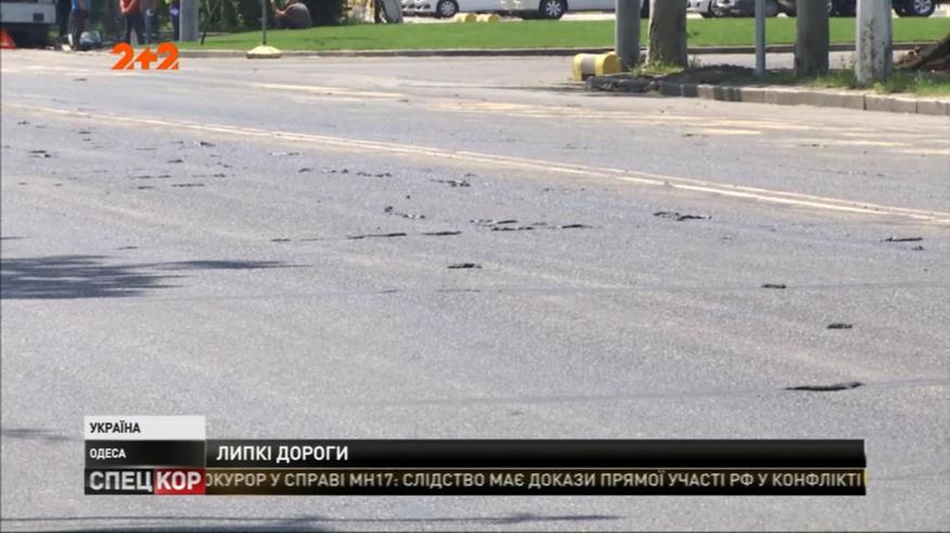 На одеських дорогах через спеку та неякісний ремонт попливли смоляні латки