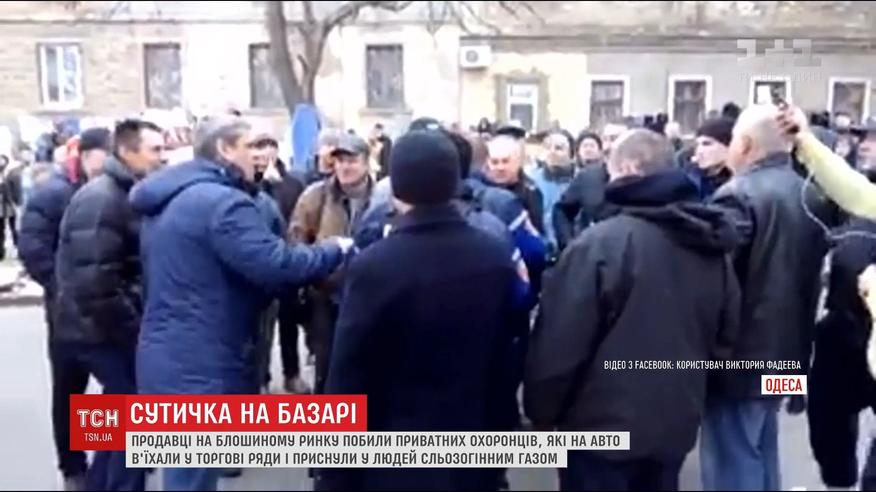 Інцидент стався, коли нетверезі охоронці надто швидко намагалися проїхати вулицею біля Старокінного базару. Там вихідними прямо з тротуару продають різні вживані речі, і автівка охоронців ледве не збила людей, що стояли поруч. Один з продавців зробив зауваження людям у спецформі, у відповідь отримав порцію сльозогінного газу від нетверезого охоронця, який різко вискочив зі автівки.