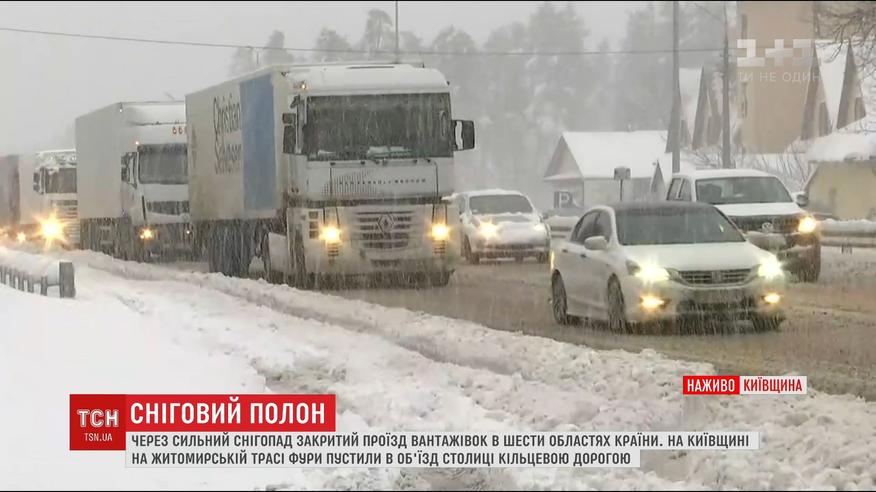 Фури рухаються повільно та створюють величезні черги. В бік житомира ситуація залишається не змінною. Досі існує затор, автомобілі розтягнулися на понад 15 кілометрів. Поліцейські намагаються, якось перелаштувати фури у один ряд, але зробити їм це не вдається - забагато вантажівок.