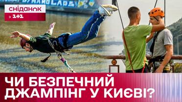 На Пішохідному мосту запрацював роуп-джампінг: чи безпечна популярна розвага у Києві?